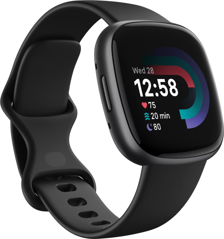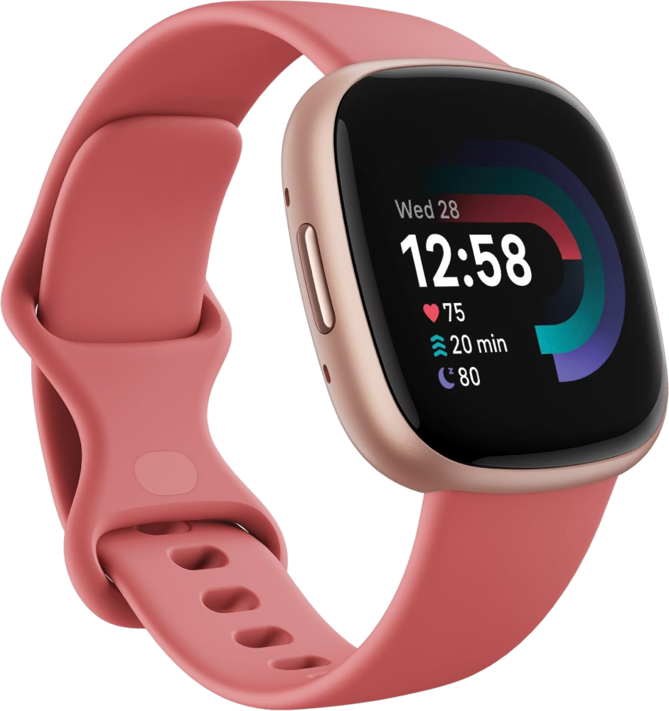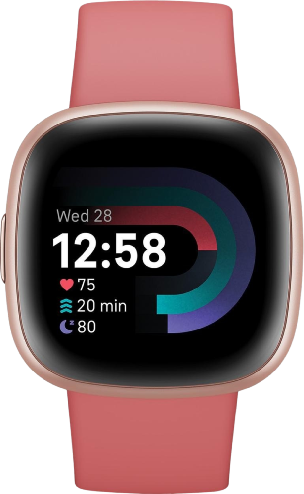 De Fitbit Versa 4 heeft een lichter en dunner ontwerp gekregen met een fysieke knop. De accu houdt het zes dagen vol, maar als je de smartwatch 12 minuten aan de oplader hangt, kan je ze een dag gebruiken.