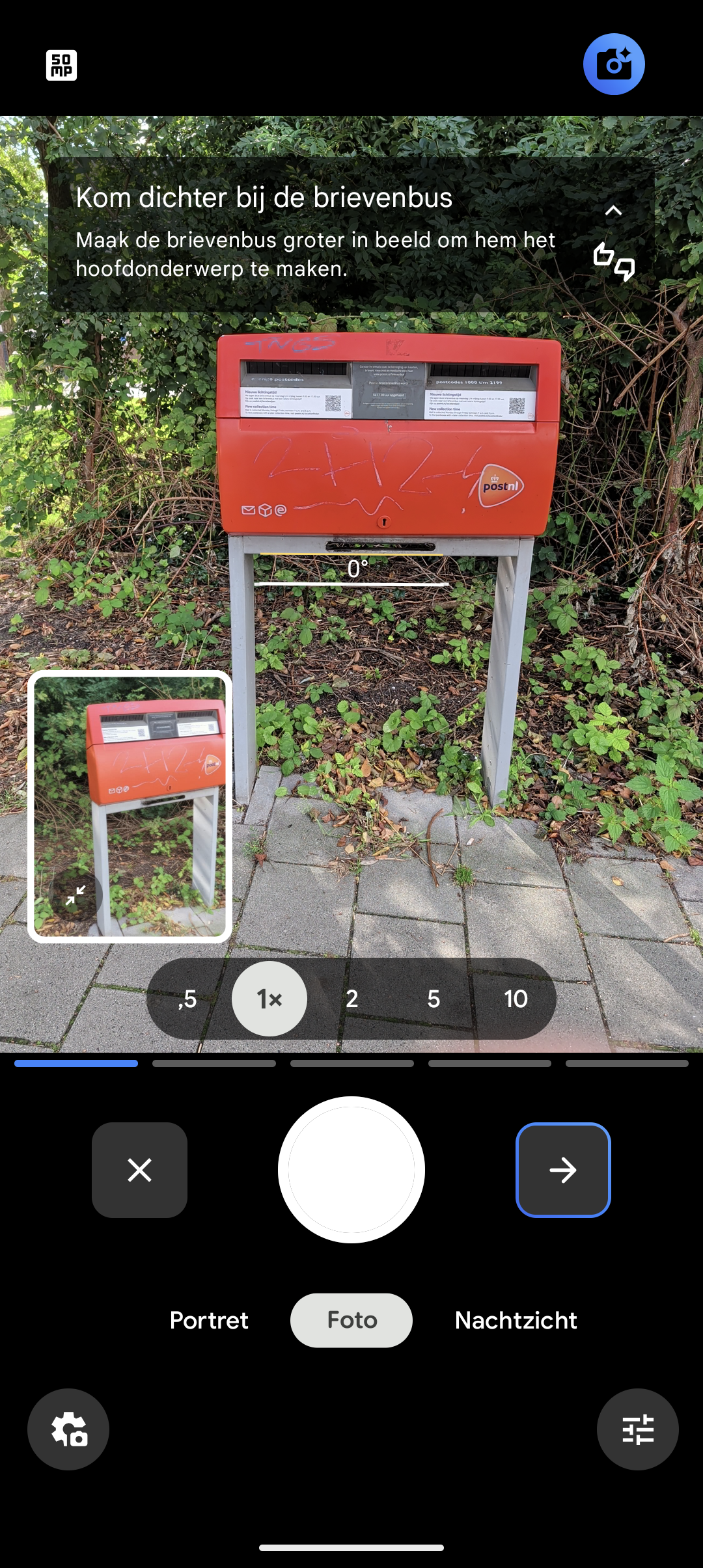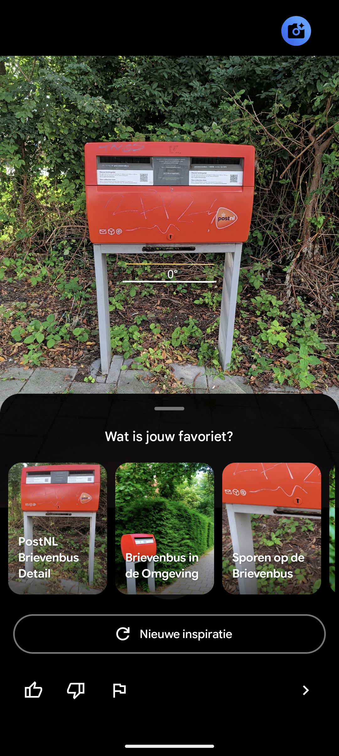 - Zo zie je dat hij herkent wat hij voor zich heeft en komt hij met tips van hoe je breder kunt fotograferen of meer kunt inzoomen op een bepaald onderdeel. Kies welk standpunt je mooi lijkt.